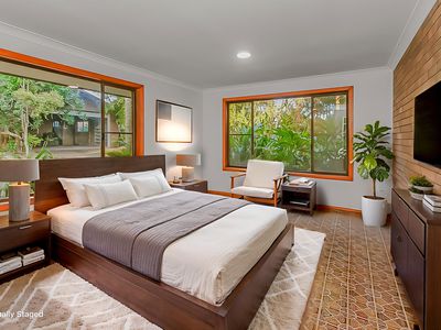 When driving into the property you are enveloped by a canopy of established trees before the original single level house is revealed and situated at a particular location to capture the best views. From the highest point the property is generally level and the land gently slopes down toward the street.