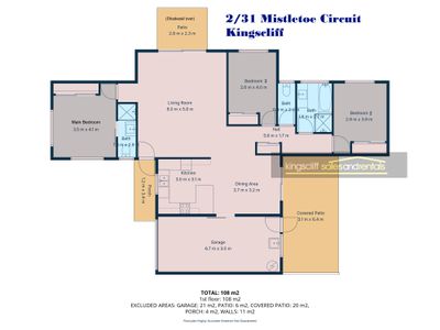 Total floor area inside property 126m2; area of yard 303m2 total land area this duplex occupies including the exclusive use yard is 429m2.